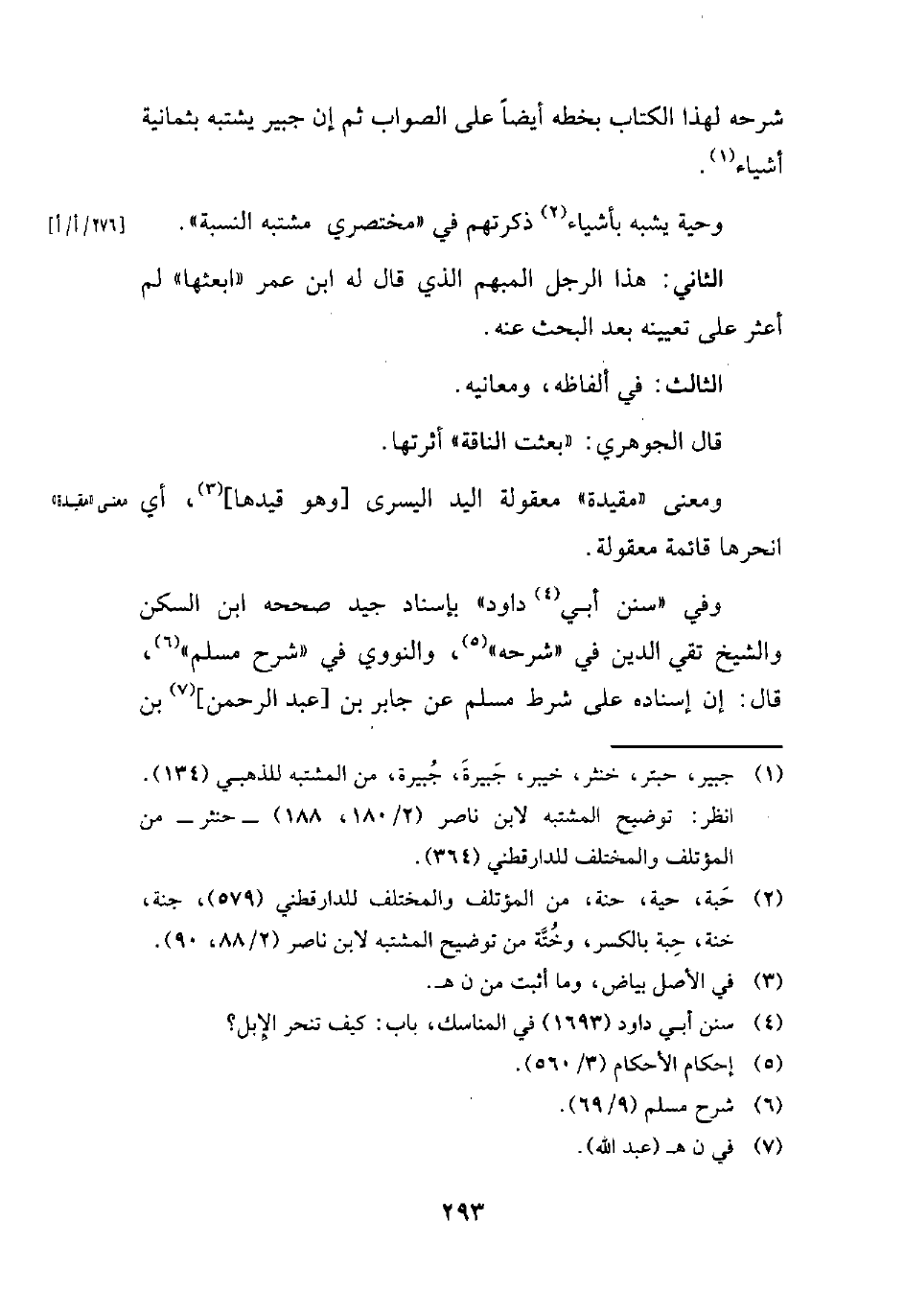 شرحه لهذا الكتاب بخطه أيضاً على الصواب ثم إن جبير يشتبه بثمانية أشياء (¬1).