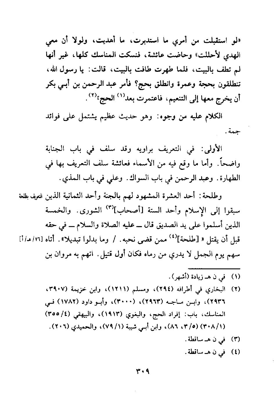 (¬2) البخاري في أطرافه (294)، ومسلم (1211)، وابن خزيمة (3907، 2936)، وابن ماجه (2963)، (3000)، وأبو داود (1782) في المناسك، باب. إفراد الحج، والبغوي (1913)، والبيهقي (4/ 355) (1/ 308) (5/ 3، 86)، وابن أبي شيبة (1/ 79)، والحميدي (206).
