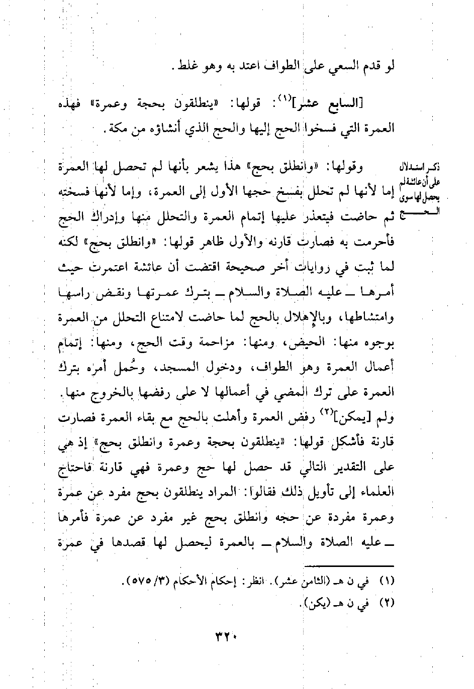 وقولها: "وانطلق بحج" هذا يشعر بأنها لم تحصل لها العمرة إما لأنها لم تحلل بفسخ حجها الأول إلى العمرة، وإما لأنها فسخته ثم حاضت فيتعذر عليها إتمام العمرة والتحلل منها وإدراك الحج فأحرمت به فصارت قارنه والأول ظاهر قولها: "وانطلق بحج" لكنه لما ثبت في روايات أخر صحيحة اقتضت أن عائشة اعتمرت حيث أمرها -عليه الصلاة والسلام- بترك عمرتها ونقض راسها وامتشاطها، وبالإِهلال بالحج لما حاضت لامتناع التحلل من العمرة بوجوه منها: الحيض، ومنها: مزاحمة وقت الحج، ومنها: إتمام أعمال العمرة وهو الطواف، ودخول المسجد، وحُمل أمره بترك العمرة على ترك المضي في أعمالها لا على رفضها بالخروج منها. ولم [يمكن] (¬2) رفض العمرة وأهلت بالحج مع بقاء العمرة فصارت قارنة فأشكل قولها: "ينطلقون بحجة وعمرة وانطلق بحج" إذ هي على التقدير التالي قد حصل لها حج وعمرة فهي قارنة فاحتاج العلماء إلى تأويل ذلك فقالوا: المراد ينطلقون بحج مفرد عن عمرة وعمرة مفردة عن حجه وانطلق بحج غير مفرد عن عمرة فأمرها -عليه الصلاة والسلام- بالعمرة ليحصل لها قصدها في عمرة