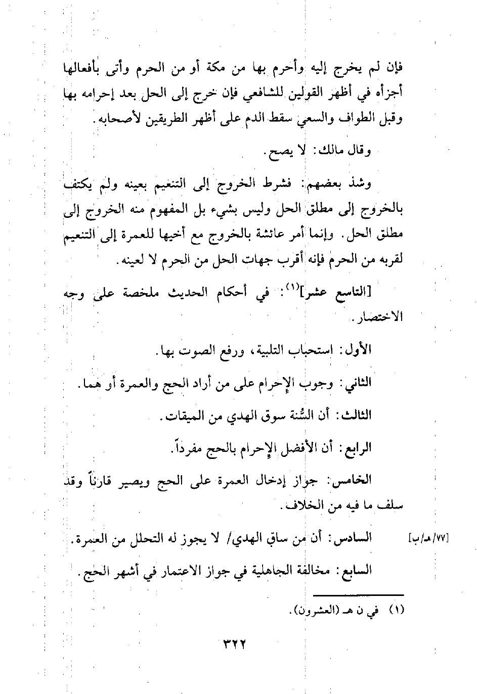 وشذ بعضهم: فشرط الخروج إلى التنعيم بعينه ولم يكتف بالخروج إلى مطلق الحل وليس بشيء بل المفهوم منه الخروج إلى مطلق الحل. وإنما أمر عائشة بالخروج مع أخيها للعمرة إلى التنعيم لقربه من الحرم فإنه أقرب جهات الحل من الحرم لا لعينه.