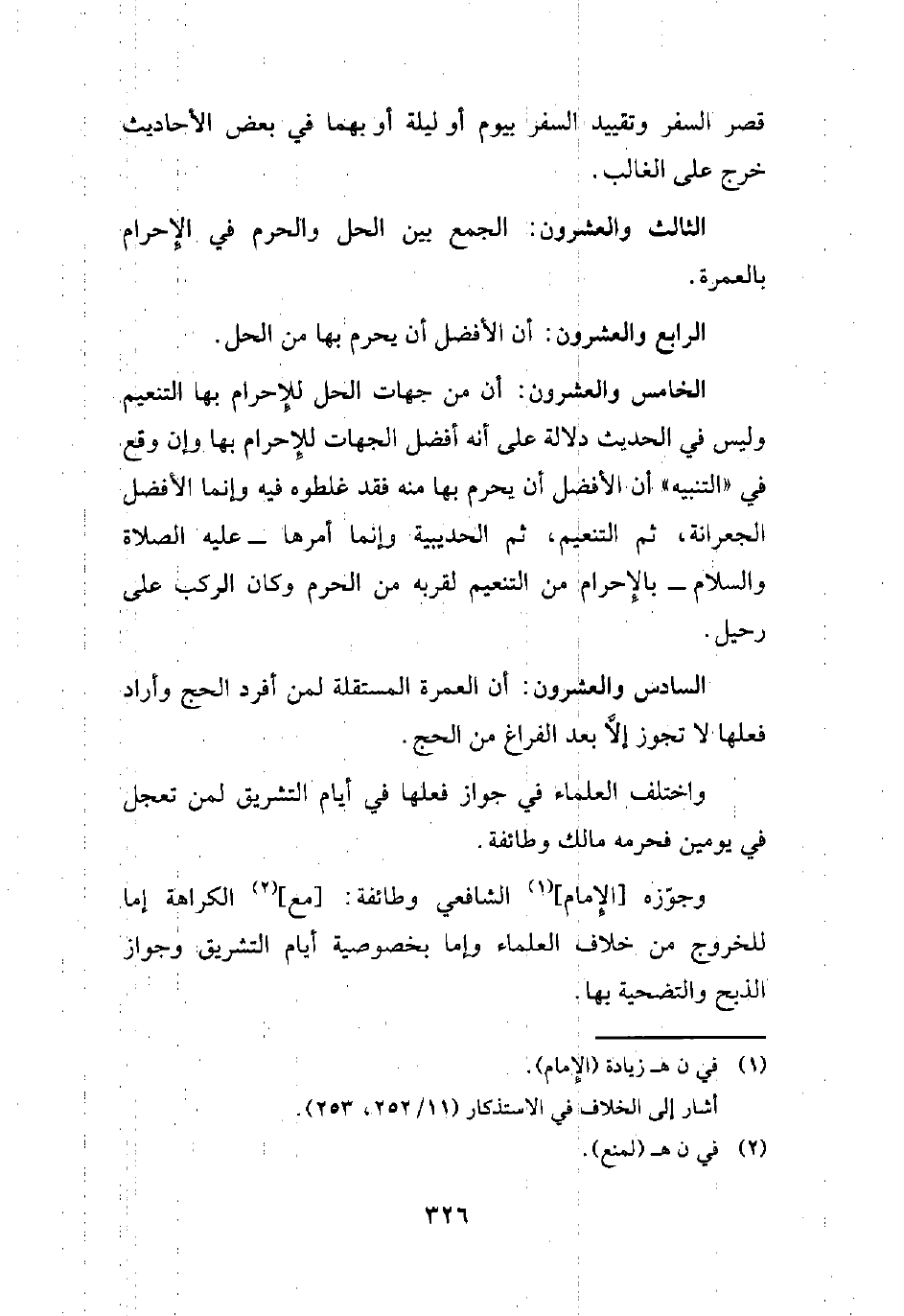 السادس والعشرون: أن العمرة المستقلة لمن أفرد الحج وأراد فعلها لا تجوز إلاَّ بعد الفراغ من الحج.