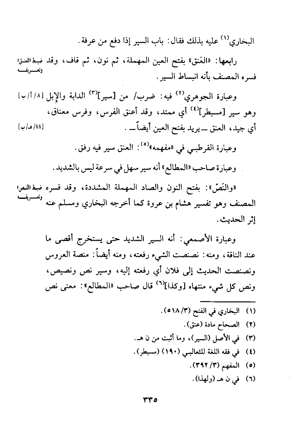 رابعها: "العَنق" بفتح العين المهملة، ثم نون، ثم قاف، وقد فسره المصنف بأنه انبساط السير.