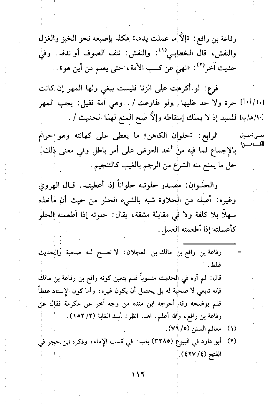 (¬2) أبو داود في البيوع (3285) باب: في كسب الإِماء، وذكره ابن حجر في الفتح (4/ 427).