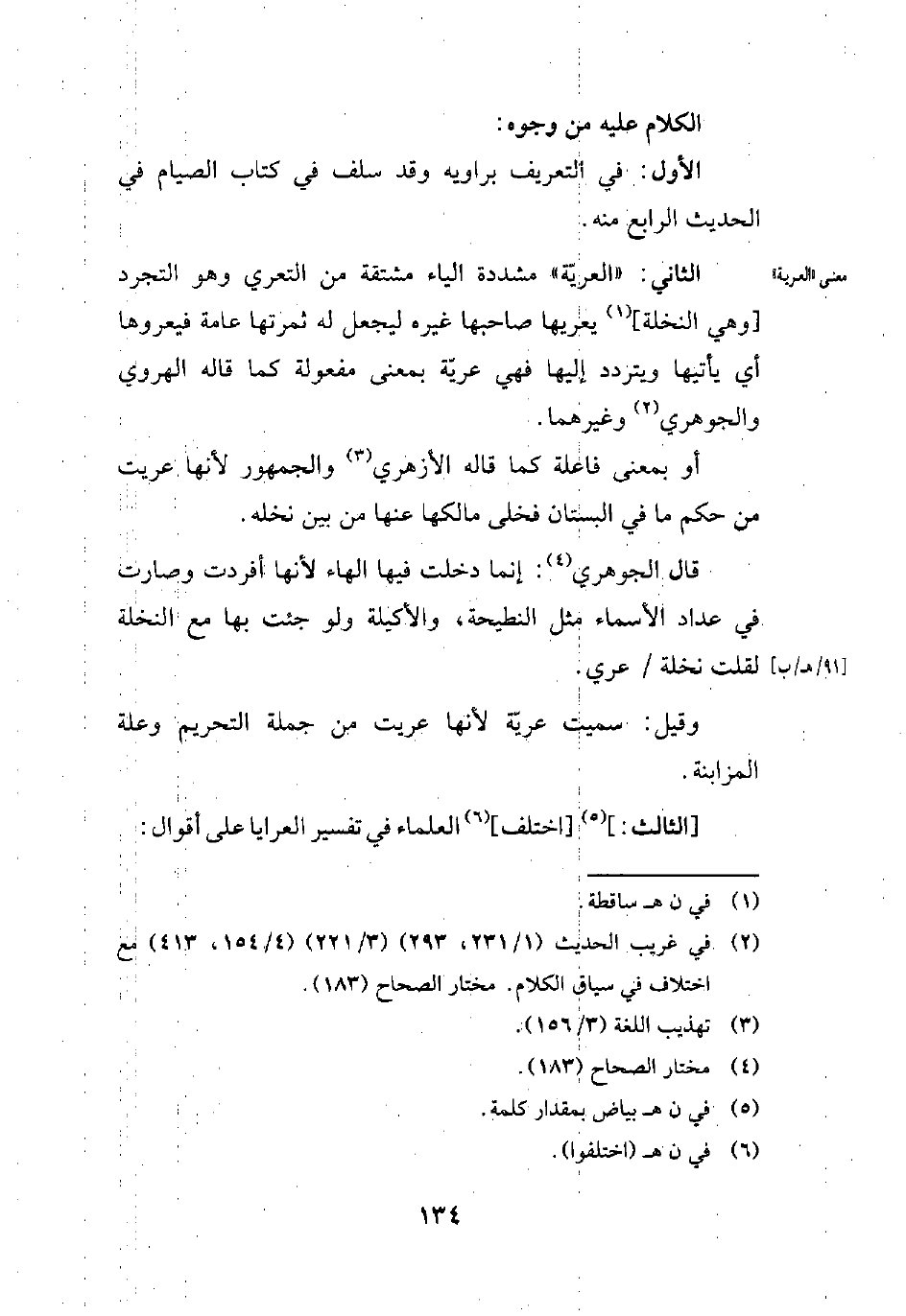 الثاني "العريّة" مشددة الياء مشتقة من التعري وهو التجرد [وهي النخلة] (¬1) يعريها صاحبها غيره ليجعل له ثمرتها عامة فيعروها أي يأتيها ويتردد إليها فهي عريّة بمعنى مفعولة كما قاله الهروي والجوهري (¬2) وغيرهما.