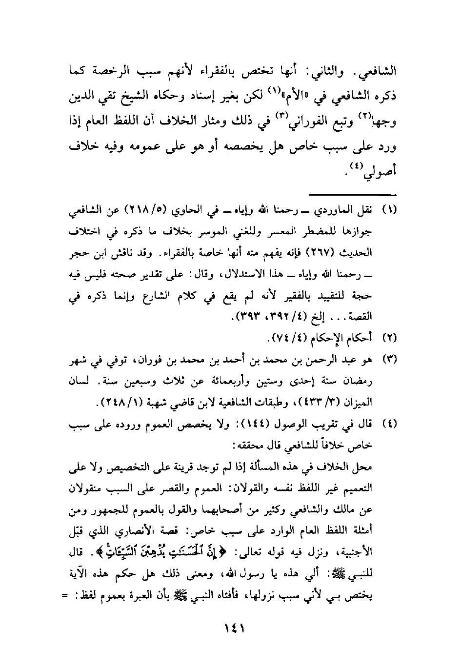 (¬4) قال في تقريب الوصول (144): ولا يخصص العموم وروده على سبب خاص خلافاً للشافعي قال محققه: