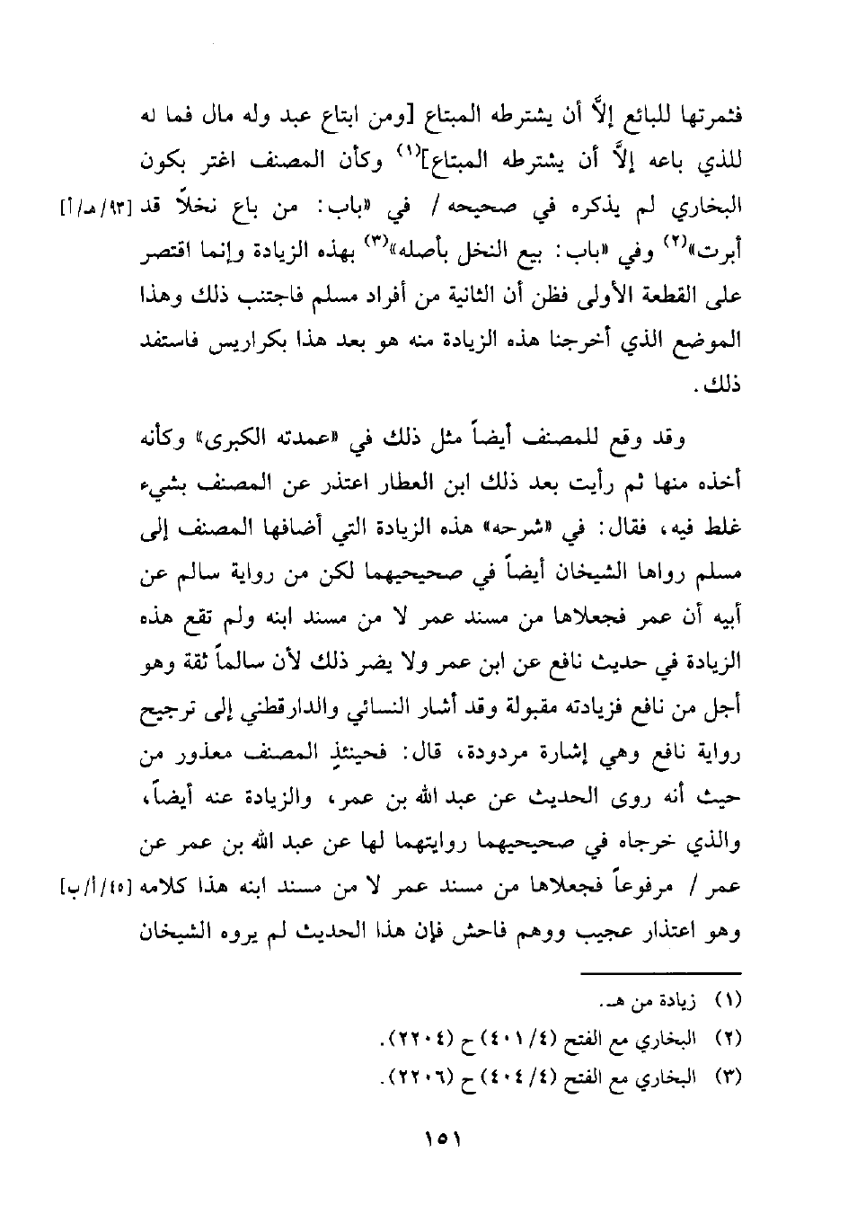فثمرتها للبائع إلاَّ أن يشترطه المبتاع [ومن ابتاع عبد وله مال فما له للذي باعه إلاَّ أن يشترطه المبتاع] (¬1) وكأن المصنف اغتر بكون البخاري لم يذكره في صحيحه في "باب: من باع نخلاً قد أبرت" (¬2) وفي "باب: بيع النخل بأصله" (¬3) بهذه الزيادة وإنما اقتصر على القطعة الأولى فظن أن الثانية من أفراد مسلم فاجتنب ذلك وهذا الموضع الذي أخرجنا هذه الزيادة منه هو بعد هذا بكراريس فاستفد ذلك.