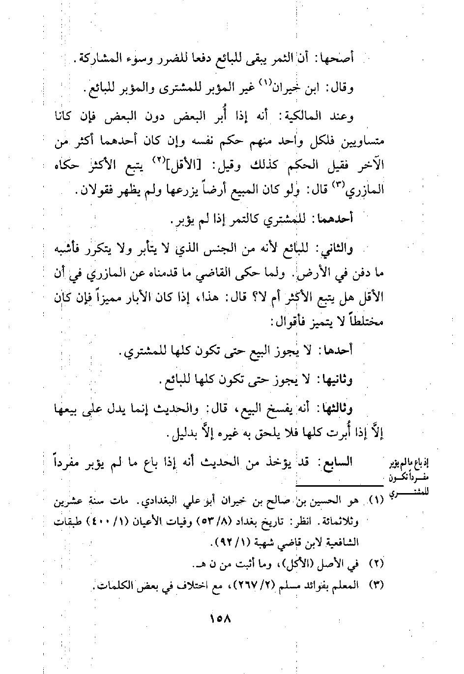 (¬1) هو الحسين بن صالح بن خيران أبو علي البغدادي. مات سنة عشرين وثلاثمائة. انظر: تاريخ بغداد (8/ 53) وفيات الأعيان (1/ 400) طبقات الشافعية لابن قاضي شهبة (1/ 92).