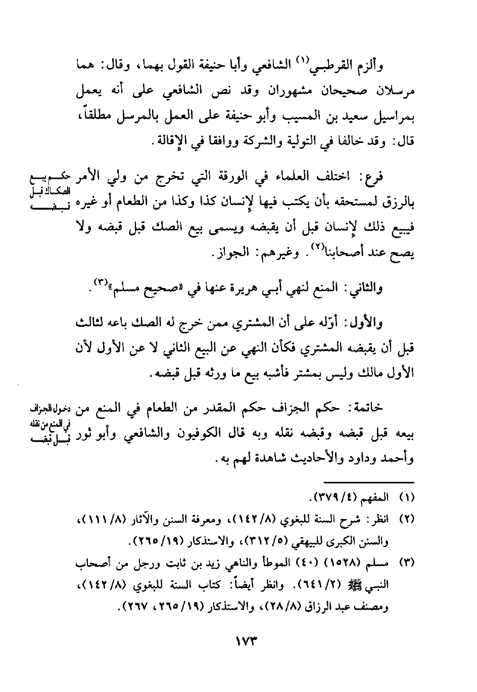 (¬2) انظر: شرح السنة للبغوي (8/ 142)، ومعرفة السنن والآثار (8/ 111)، والسنن الكبرى للبيهقي (5/ 312)، والاستذكار (19/ 265).