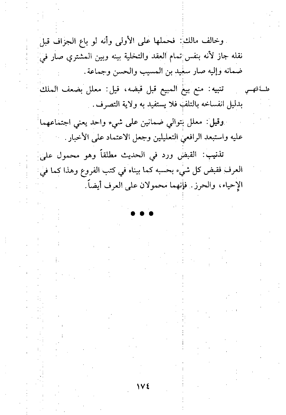 تذنيب: القبض ورد في الحديث مطلقاً وهو محمول على العرف فقبض كل شيء بحسبه كما بيناه في كتب الفروع وهذا كما في الإِحياء، والحرز. فإنهما محمولان على العرف أيضاً.