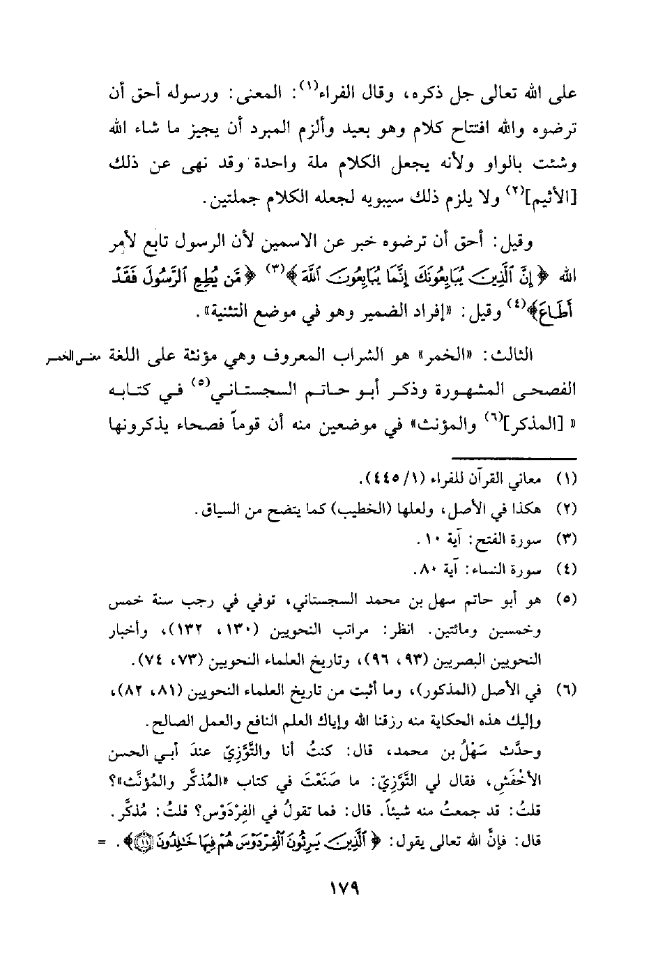 (¬5) هو أبو حاتم سهل بن محمد السجستاني، توفي في رجب سنة خمس وخمسين ومائتين. انظر: مراتب النحويين (130، 132)، وأخبار النحويين البصريين (93، 96)، وتاريخ العلماء النحوين (73، 74).