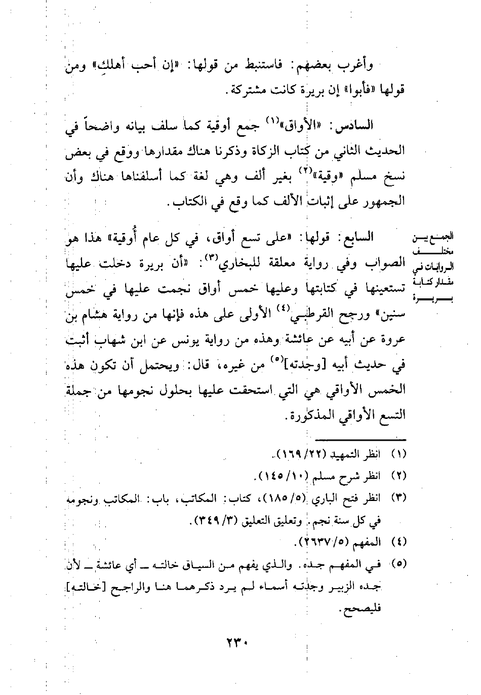 (¬3) انظر فتح الباري (5/ 185)، كتاب: المكاتب، باب: المكاتب ونجومه في كل سنة نجم. وتعليق التعليق (3/ 349).