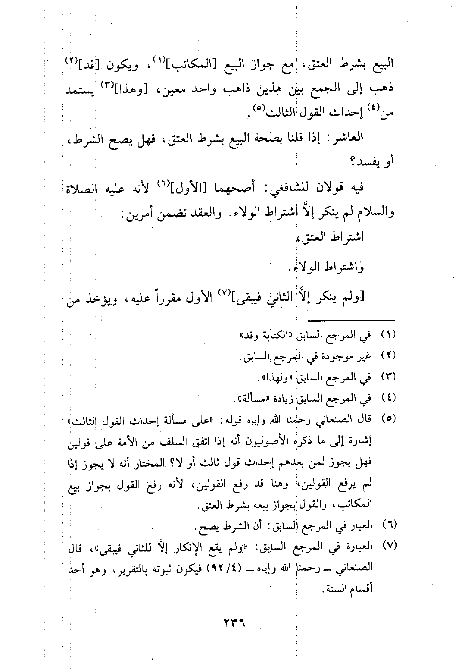 (¬5) قال الصنعاني -رحمنا الله وإياه- قوله: "على مسألة إحداث القول الثالث" إشارة إلى ما ذكره الأصوليون أنه إذا اتفق السلف من الأمة على قولين فهل يجوز لمن بعدهم إحداث قول ثالث أو لا؟ المختار أنه لا يجوز إذا لم يرفع القولين، وهنا قد رفع القولين، لأنه رفع القول بجواز بيع المكاتب، والقول بجواز بيعه بشرط العتق.
