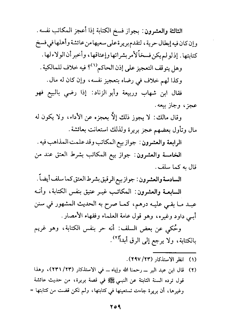 (¬2) قال ابن عبد البر -رحمنا الله وإياه- في الاستذكار (23/ 231)، وهذا قول ترده السنة الثابتة عن النبي - صلى الله عليه وسلم - في قصة بريرة، من حديث عائشة وغيرها، أن بريرة جاءت تستعينها في كتابتها, ولم تكن قضت من كتابتها =