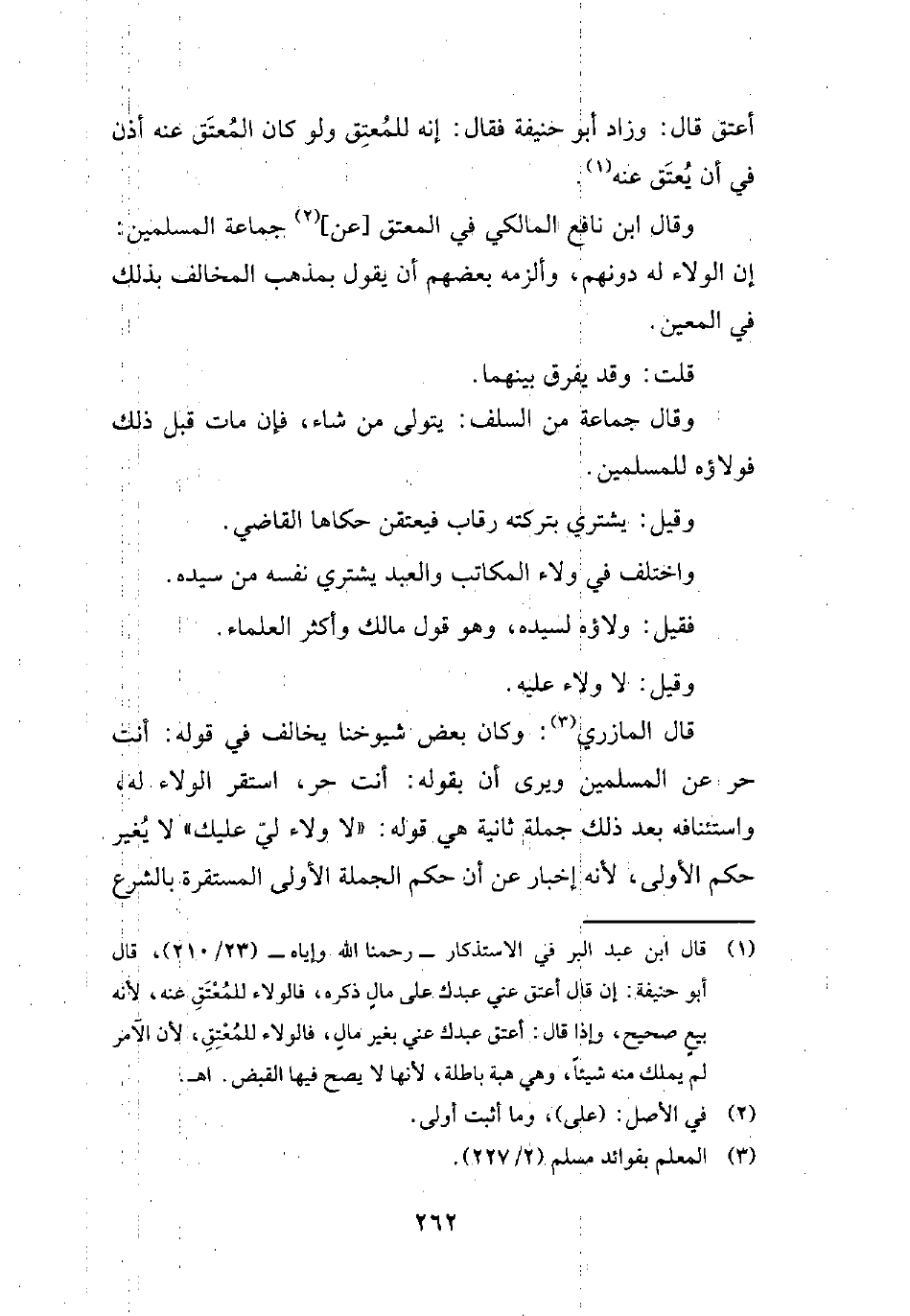 (¬1) قال ابن عبد البر في الاستذكار -رحمنا الله وإياه- (23/ 210)، قال أبو حنيفة: إن قال أعتق عني عبدك على مالٍ ذكره، فالولاء للمُعْتَقِ عنه، لأنه بيعٍ صحيح، إذا قال: أعتق عبدك عني بغير مالٍ، فالولاء للمُعْتِقِ، لأن الآمر لم يملك منه شيئاً، وهي هبة باطلة، لأنها لا يصح فيها القبض. اهـ.