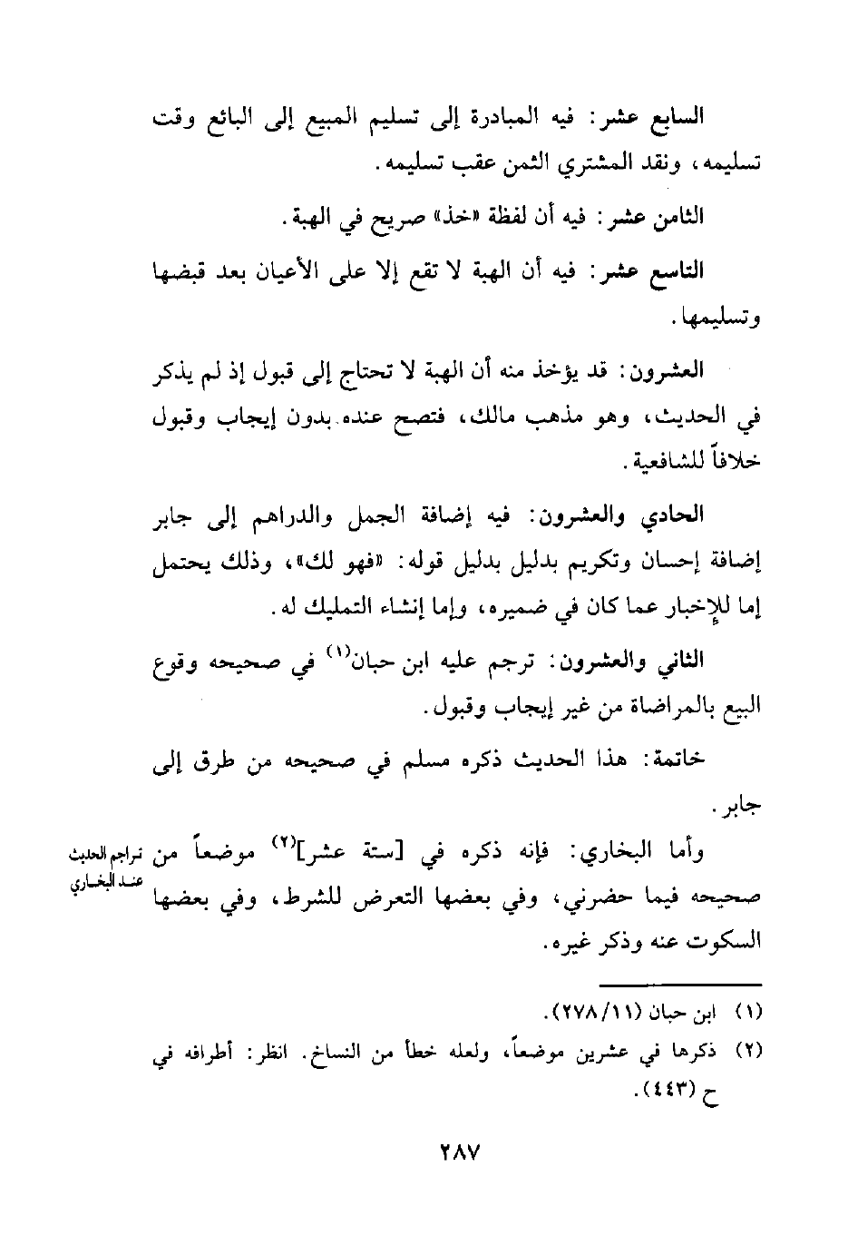 الثاني والعشرون: ترجم عليه ابن حبان (¬1) في صحيحه وقوع البيع بالمراضاة من غير إيجاب وقبول.