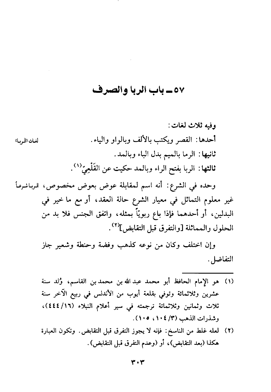 (¬2) لعله غلط من الناسخ: فإنه لا يجوز التفرق قبل التقابض. وتكون العبارة هكذا (بعد التقابض)، أو (وعدم التفرق قبل التقابض).