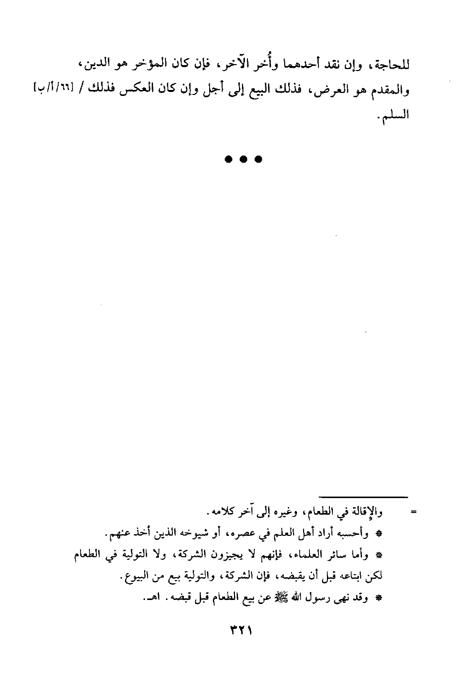 * وأما سائر العلماء، فإنهم لا يجيزون الشركة، ولا التولية في الطعام لكن ابتاعه قبل أن يقبضه، فإن الشركة، والتولية بيع من البيوع.