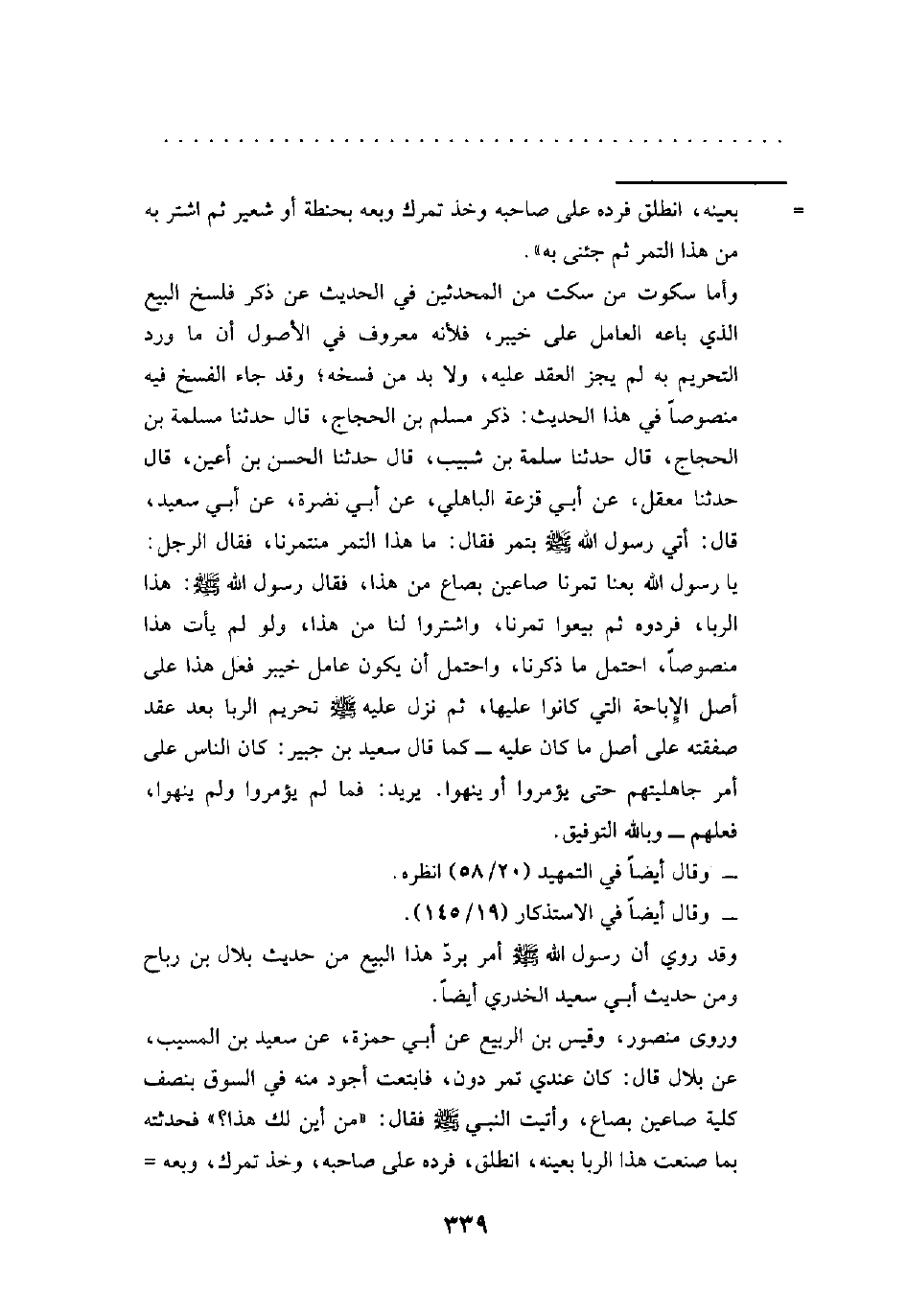 وقد روي أن رسول الله - صلى الله عليه وسلم - أمر بردّ هذا البيع من حديث بلال بن رباح ومن حديث أبي سعيد الخدري أيضاً.