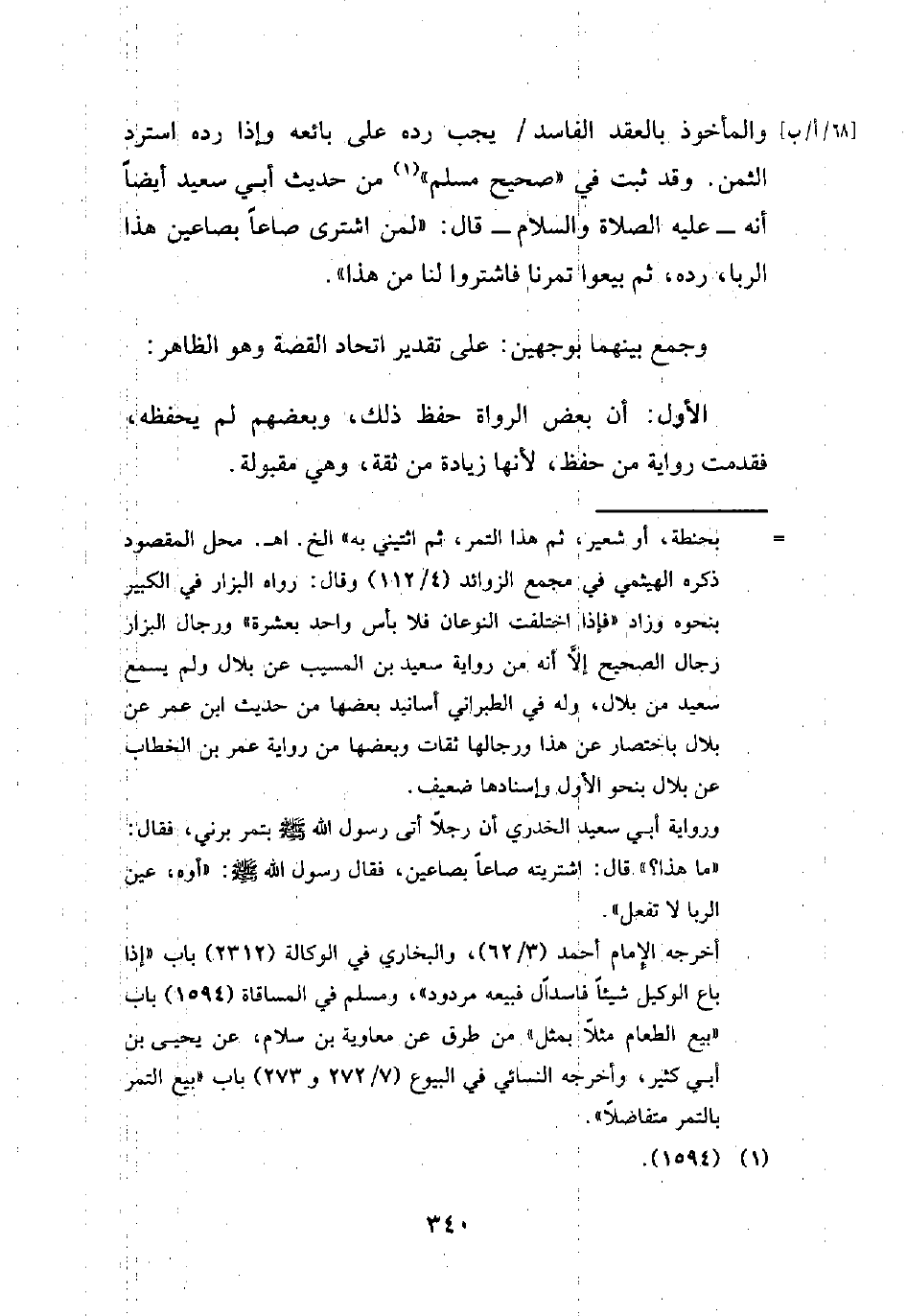 ورواية أبي سعيد الخدري أن رجلاً أتى رسول الله - صلى الله عليه وسلم - بتمر برني، فقال: "ما هذا؟ " قال: اشتريته صاعاً بصاعين، فقال رسول الله - صلى الله عليه وسلم -: "أوه، عين الربا لا تفعل".