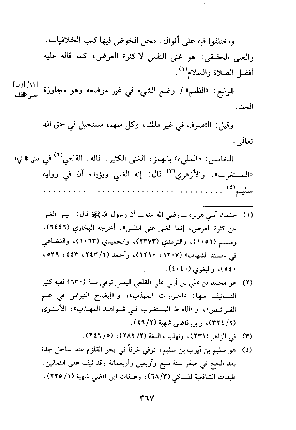 (¬1) حديث أبي هريرة -رضي الله عنه- أن رسول الله - صلى الله عليه وسلم - قال: "ليس الغنى عن كثرة العرض، إنما الغنى غنى النفس". أخرجه البخاري (6446)، ومسلم (1051)، والترمذي (2373)، والحميدي (1063)، والقضاعي في "مسند الشهاب" (1207، 1210)، وأحمد (2/ 243، 443، 539، 540)، والبغوي (4040).