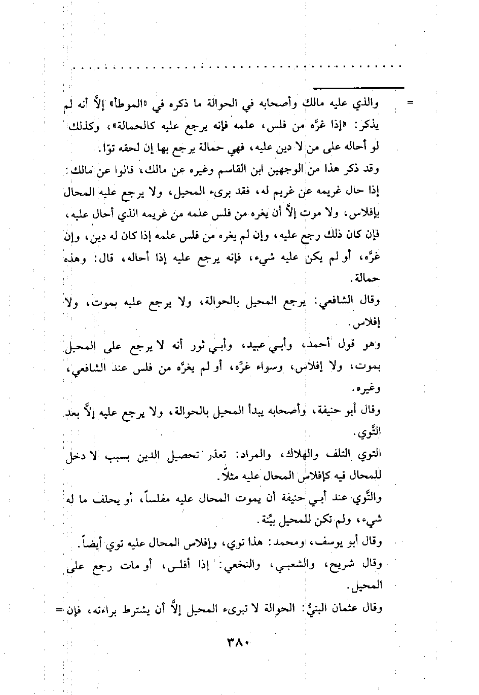 وهو قول أحمد، وأبي عبيد، وأبي ثور أنه لا يرجع على المحيل بموت، ولا إفلاس، وسواء غرَّه، أو لم يغرَّه من فلس عند الشافعي، وغيره.