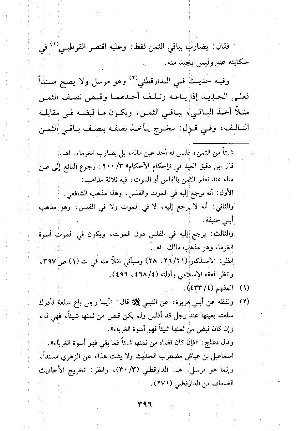 انظر: الاستذكار (21/ 26، 28) وسيأتي نقلًا منه في ت (1) ص 397، وانظر الفقه الإِسلامي وأدلته (4/ 468، 496).