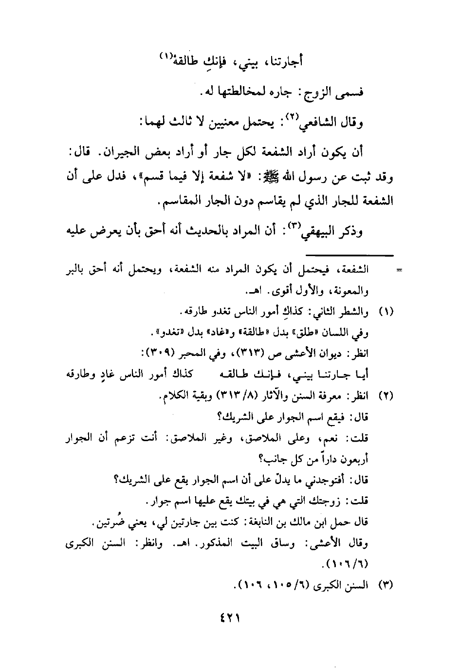 أن يكون أراد الشفعة لكل جار أو أراد بعض الجيران. قال: وقد ثبت عن رسول الله - صلى الله عليه وسلم -: "لا شفعة إلا فيما قسم"، فدل على أن الشفعة للجار الذي لم يقاسم دون الجار المقاسم.