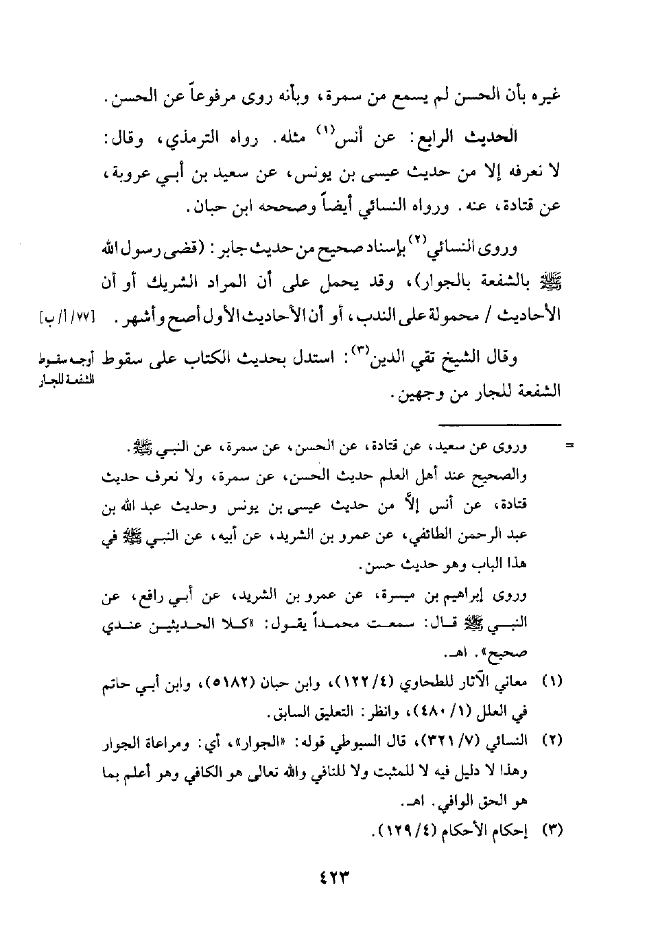 (¬2) النسائي (7/ 321)، قال السيوطي قوله: "الجوار"، أي: ومراعاة الجوار وهذا لا دليل فيه لا للمثبت ولا للنافي والله تعالى هو الكافي وهو أعلم بما هو الحق الوافي. اهـ.