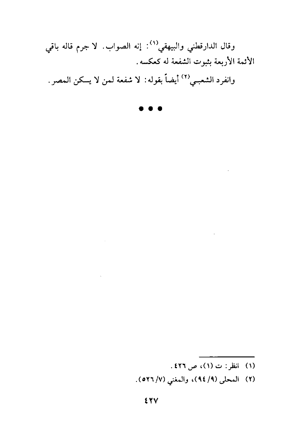 وقال الدارقطني والبيهقي (¬1): إنه الصواب. لا جرم قاله باقي الأئمة الأربعة بثبوت الشفعة له كعكسه.