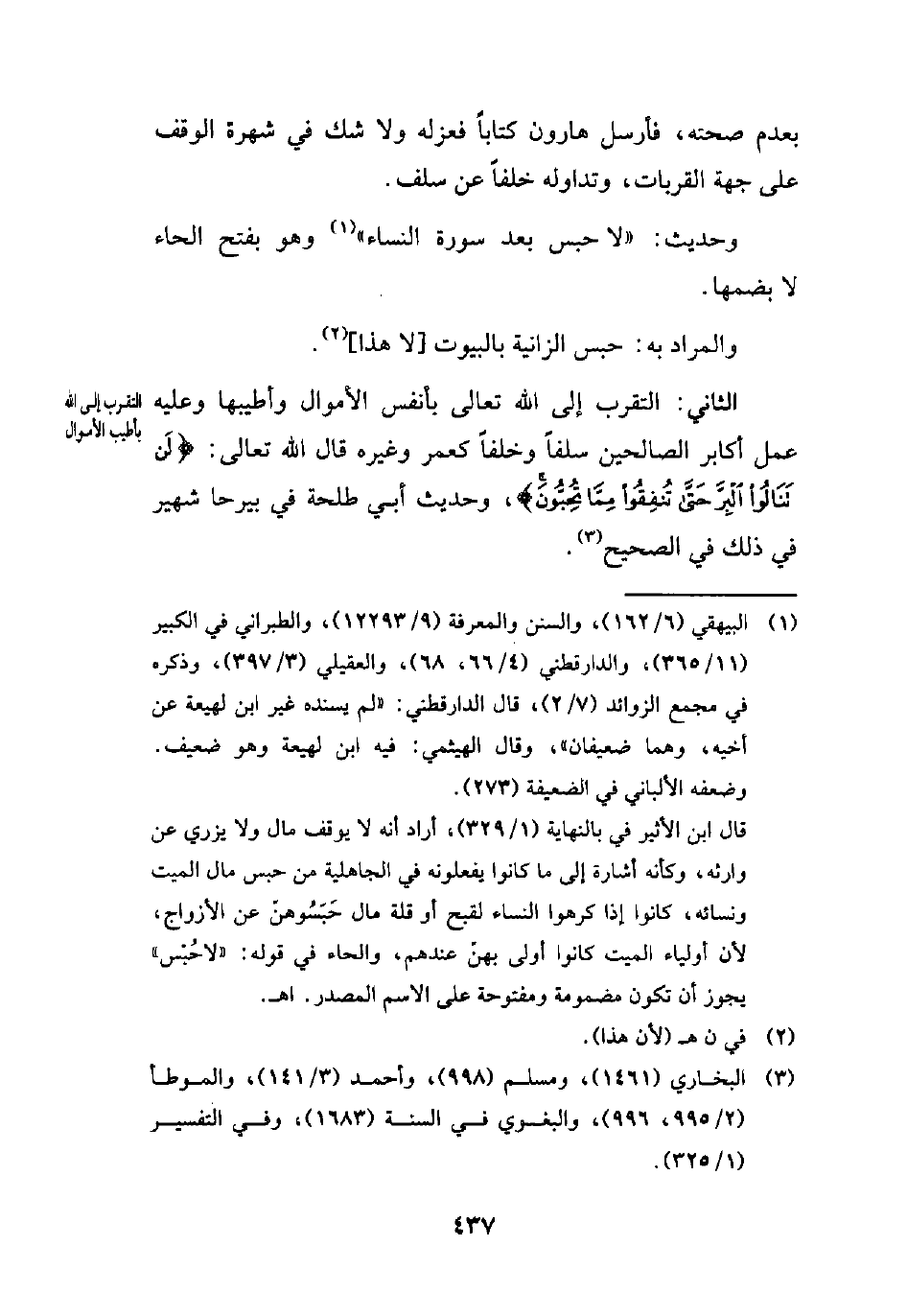 بعدم صحته، فأرسل هارون كتابًا فعزله ولا شك في شهرة الوقف على جهة القربات، وتداوله خلفًا عن سلف.