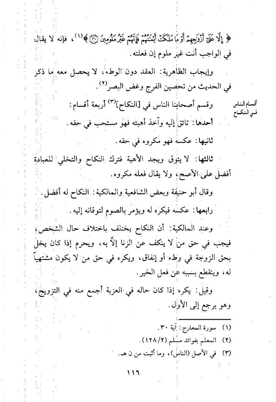 وقسم أصحابنا الناس في [النكاح] (¬3) أربعة أقسام: