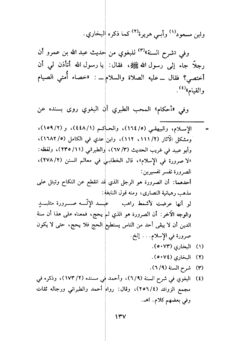 (¬4) البغوي في شرح السنة (9/ 6)، وأحمد في مسنده (2/ 173)، وذكره في مجمع الزوائد (4/ 256)، وقال: رواه أحمد والطبراني ورجاله ثقات وفي بعضهم كلام. اهـ.