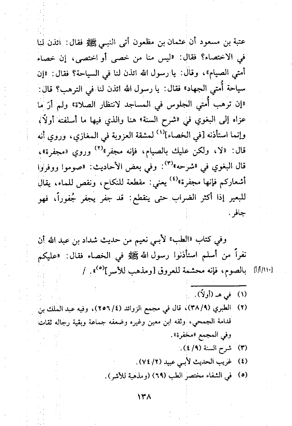 وفي كتاب "الطب" لأبي نعيم من حديث شداد بن عبد الله أن نفرًا من أسلم استأذنوا رسول الله - صلى الله عليه وسلم - في الخصاء فقال: "عليكم بالصوم، فإنه محشمة للعروق [ومذهب للأسر] (¬5) ".