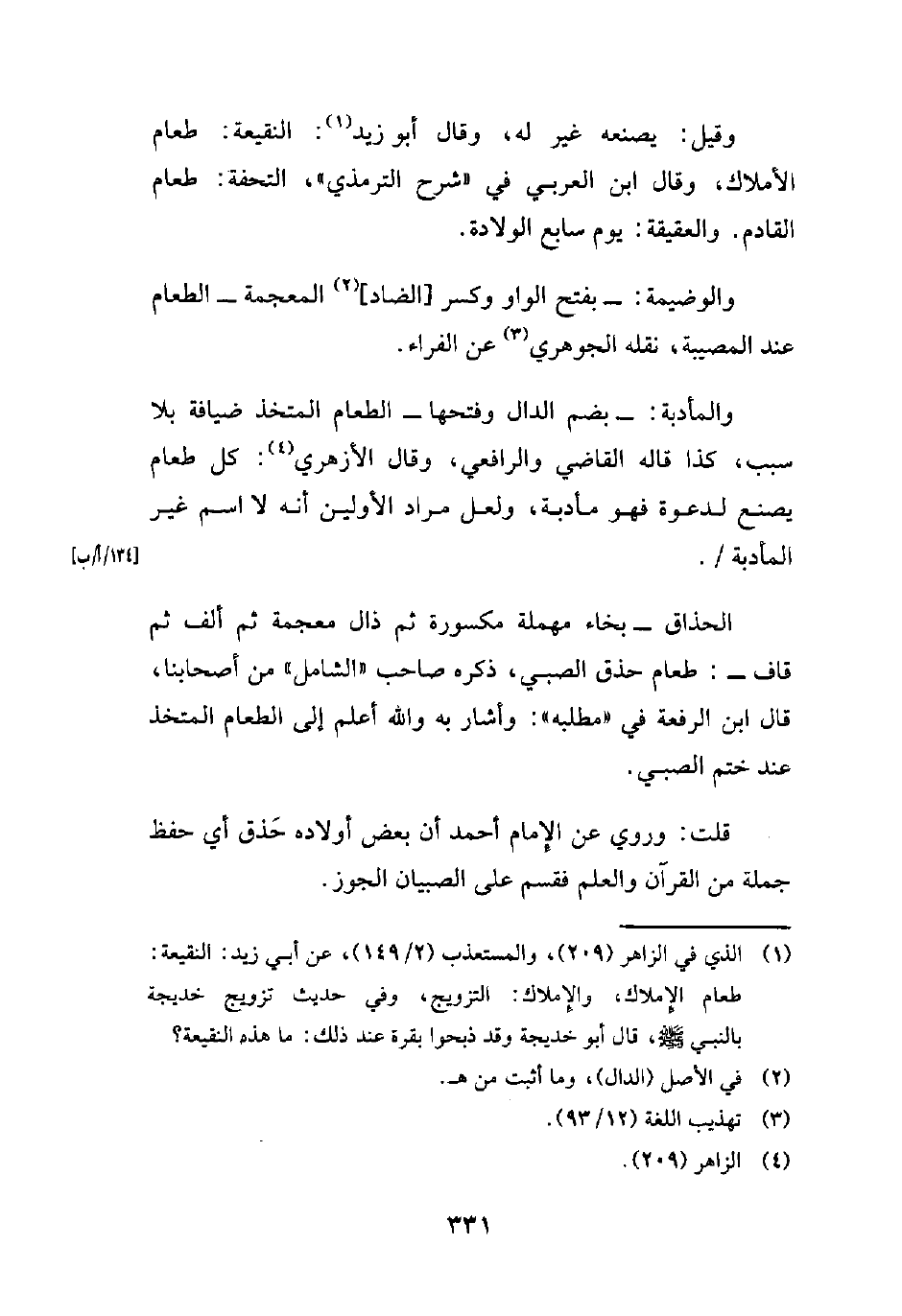 (¬1) الذي في الزاهر (209)، والمستعذب (2/ 149)، عن أبي زيد: النقيعة: طعام الإملاك، والإملاك: التزويج، وفي حديث تزويج خديجة بالنبي - صلى الله عليه وسلم -، قال أبو خديجة وقد ذبحوا بقرة عند ذلك: ما هذه النقيعة؟