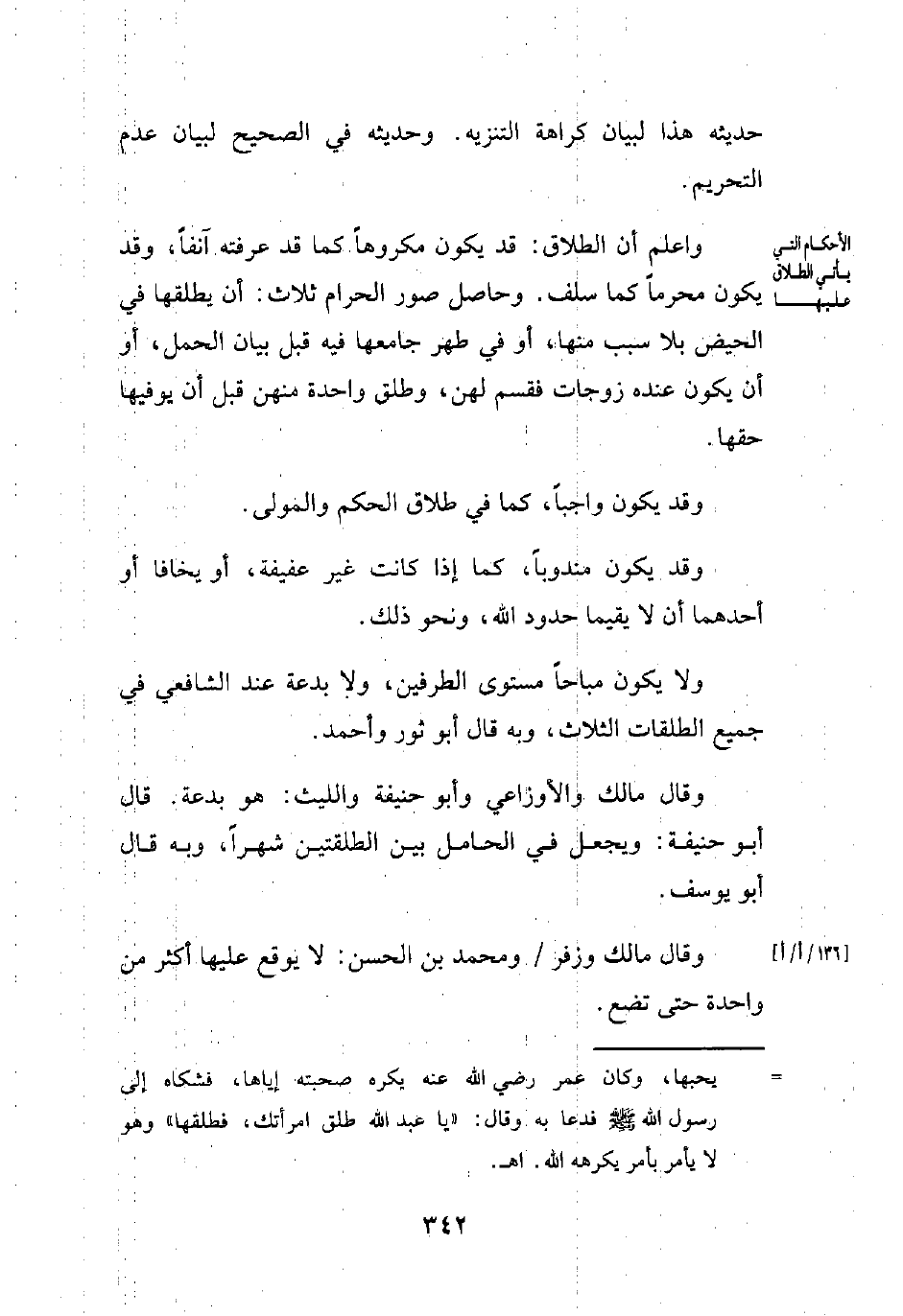 واعلم أن الطلاق: قد يكون مكروهًا كما قد عرفته آنفًا، وقد يكون محرمًا كما سلف. وحاصل صور الحرام ثلاث: أن يطلقها في الحيض بلا سبب منها، أو في طهر جامعها فيه قبل بيان الحمل، أو أن يكون عنده زوجات فقسم لهن، وطلق واحدة منهن قبل أن يوفيها حقها.