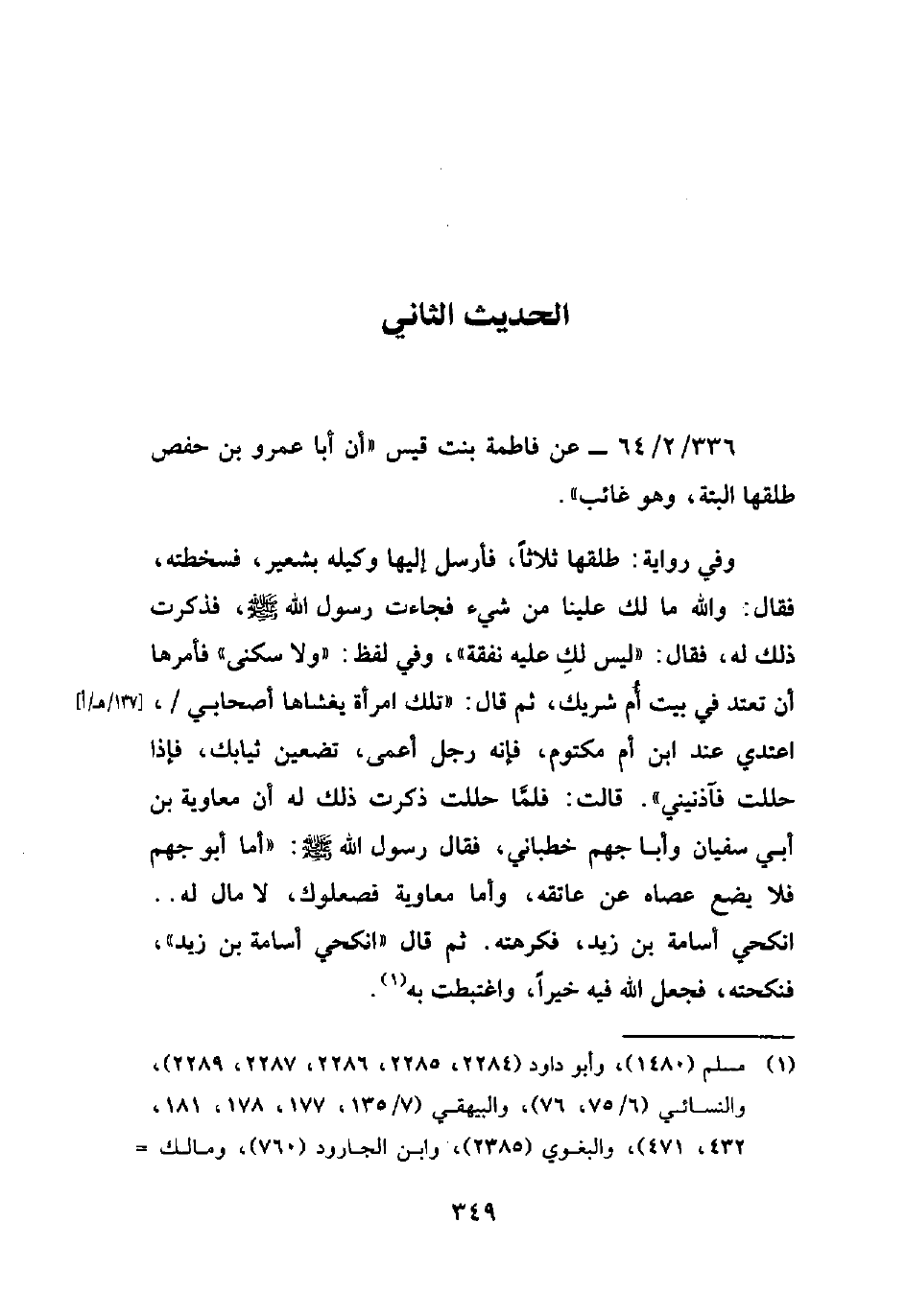336/ 2/ 64 - عن فاطمة بنت قيس "أن أبا عمرو بن حفص طلقها البتة، وهو غائب".