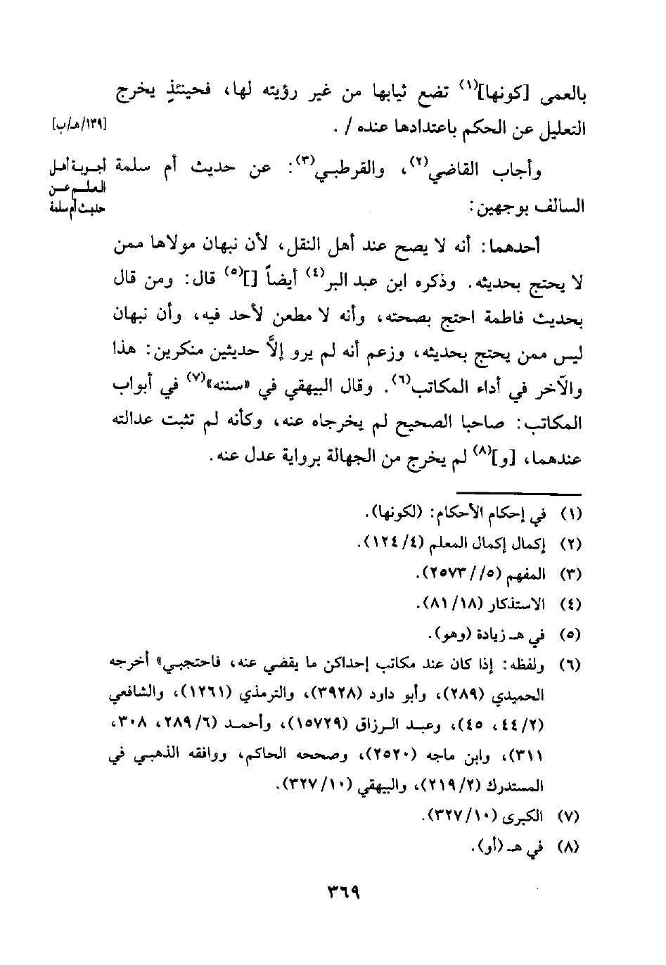 (¬6) ولفظه: إذا كان عند مكاتب إحداكن ما يقضي عنه، فاحتجبي" أخرجه الحميدي (289)، وأبو داود (3928)، والترمذي (1261)، والشافعي (2/ 44، 45)، وعبد الرزاق (15729)، وأحمد (6/ 289، 308، 311)، وابن ماجه (2520)، وصححه الحاكم، ووافقه الذهبي في المستدرك (2/ 219)، والبيهقي (10/ 327).