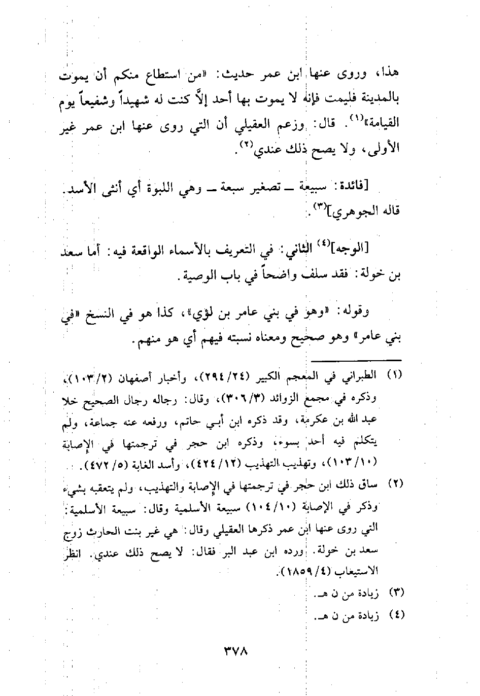 (¬2) ساق ذلك ابن حجر في ترجمتها في الإِصابة والتهذيب، ولم يتعقبه بشيء وذكر في الإصابة (10/ 104) سبيعة الأسلمية وقال: سبيعة الأسلمية: التي روى عنها ابن عمر ذكرها العقيلي وقال: هي غير بنت الحارث زوج سعد بن خولة. ورده ابن عبد البر فقال: لا يصح ذلك عندي. انظر الاستيعاب (4/ 1859).
