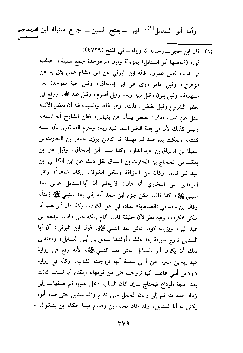 وأما أبو السنابل (¬1): فهو -بفتح السين- جمع سنبلة ابن