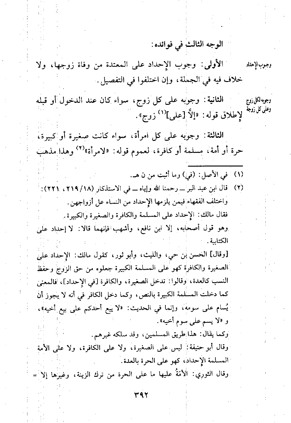 (¬2) قال ابن عبد البر -رحمنا الله وإياه- في الاستذكار (18/ 219، 221): واختلف الفقهاء فيمن يلزمها الإِحداد من النساء على أزواجهن.