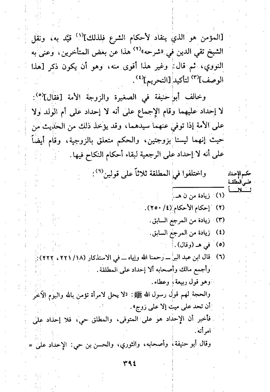وخالف أبو حنيفة في الصغيرة والزوجة الأمة [فقال] (¬5): لا إحداد عليهما وقام الإِجماع على أنه لا إحداد على أم الولد ولا على الأمة إذا توفي عنهما سيدهما، وقد يؤخذ ذلك من الحديث من حيث إنهما ليستا بزوجتين، والحكم متعلق بالزوجية، وقام أيضًا على أنه لا إحداد على الرجعية لبقاء أحكام النكاح فيها.