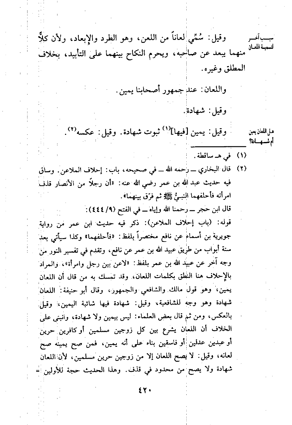 (¬2) قال البخاري -رحمه الله- في صحيحه، باب: إحلاف الملاعن. وساق فيه حديث عبد الله بن عمر - رضي الله عنه -: "أن رجلًا من الأنصار قذف امرأته فأحلفهما النبيُّ - صلى الله عليه وسلم - ثم فرّق بينهما".