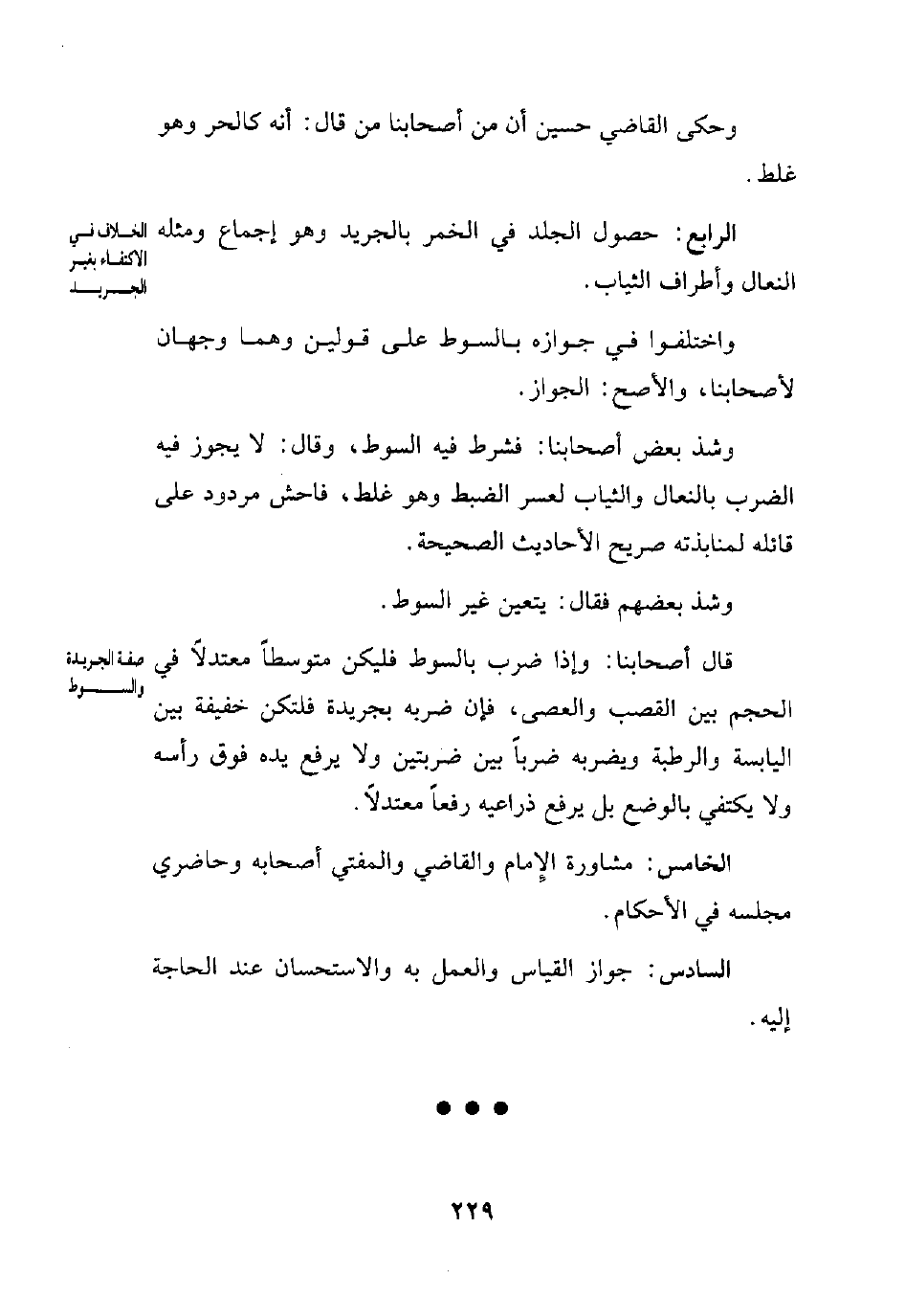 وشذ بعض أصحابنا: فشرط فيه السوط، وقال: لا يجوز فيه الضرب بالنعال والثياب لعسر الضبط وهو غلط، فاحش مردود على قائله لمنابذته صريح الأحاديث الصحيحة.