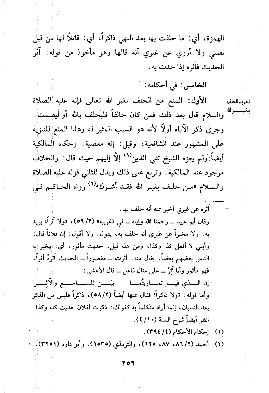 الأول: المنع من الحلف بغير الله تعالى فإنه -عليه الصلاة والسلام- قال بعد ذلك فمن كان حالفًا فليحلف بالله أو ليصمت. وجرى ذكر الآباء أولًا لأنه هو السبب المثير له وهذا المنع للتنزيه على المشهور عند الشافعية، وقيل: إنه معصية. وحكاه المالكية أيضًا ولم يعزه الشيخ تقي الدين (¬1) إلَّا إليهم حيث قال: والخلاف موجود عند المالكية. وتوبع على ذلك ويدل للثاني قوله -عليه الصلاة والسلام- "من حلف بغير الله فقد أشرك" (¬2) رواه الحاكم في