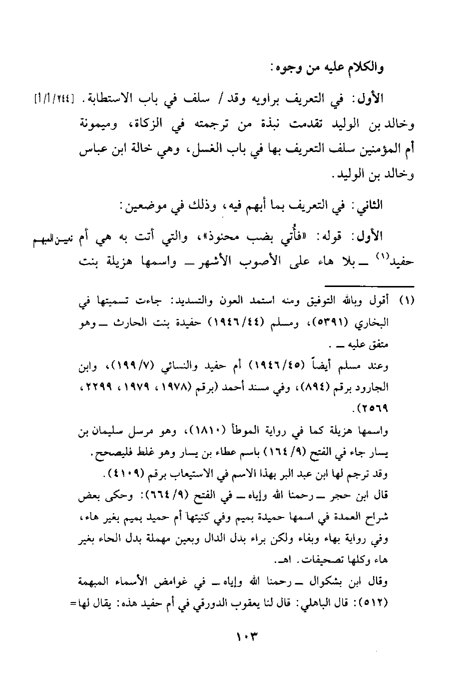 (¬1) أقول وبالله التوفيق ومنه استمد العون والشديد: جاءت تسميتها في البخاري (5391)، ومسلم (44/ 1946) حفيدة بن الحارث -وهو متفق عليه-.