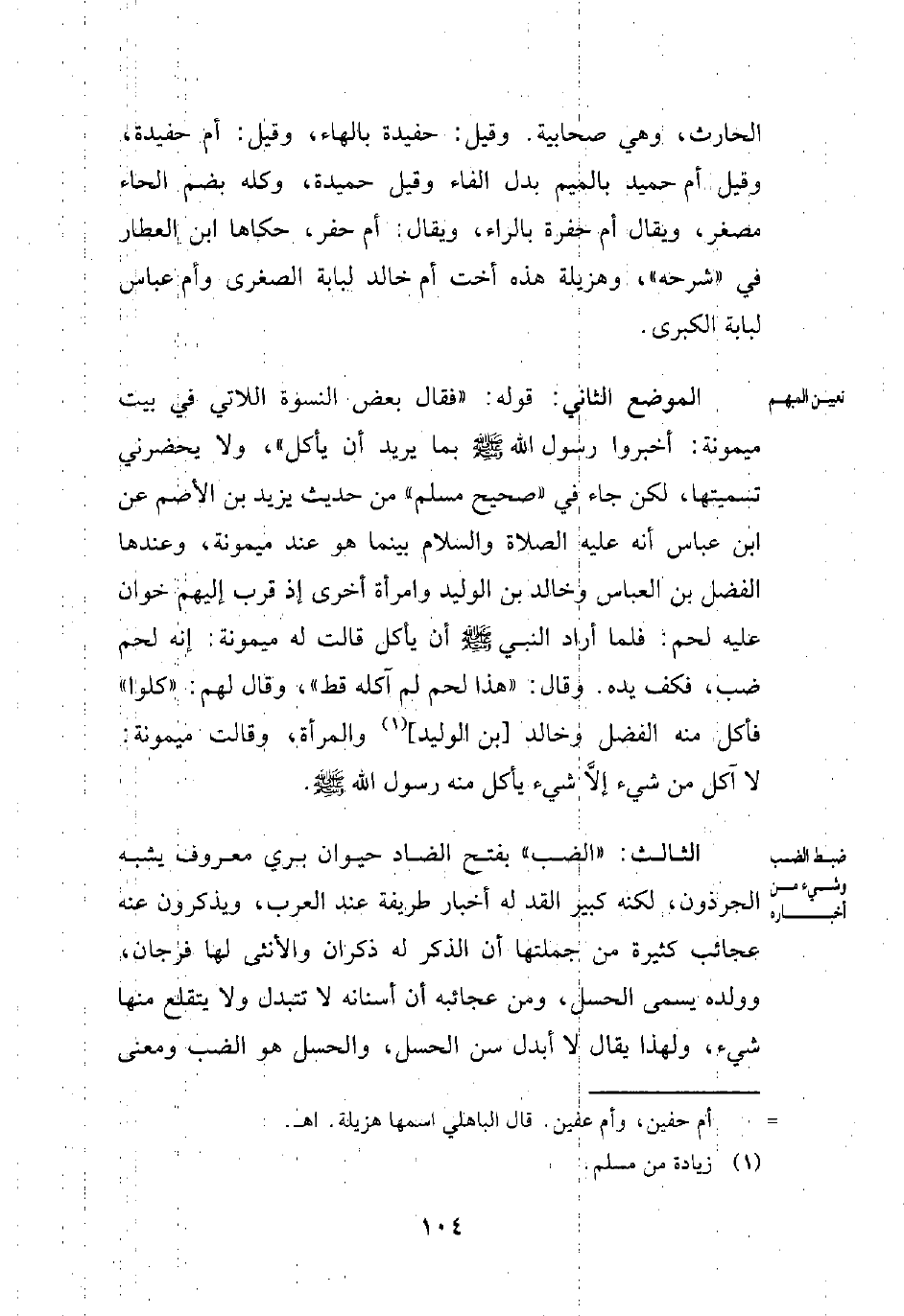 الموضع الثاني: قوله: "فقال بعض النسوة اللاتي في بيت ميمونة: أخبروا رسول الله - صلي الله عليه وسلم - بما يريد أن يأكل"، ولا يحضرني تسميتها، لكن جاء في "صحيح مسلم" من حديث يزيد بن الأصم عن ابن عباس أنه عليه الصلاة والسلام بينما هو عند ميمونة، وعندها الفضل بن العباس وخالد بن الوليد وامرأة أخرى إذ قرب إليهم خوان عليه لحم: فلما أراد النبي - صلي الله عليه وسلم - أن يأكل قالت له ميمونة: إنه لحم ضب، فكف يده. وقال: "هذا لحم لم آكله قط"، وقال لهم: "كلوا" فأكل منه الفضل وخالد [بن الوليد] (¬1) والمرأة، وقالت ميمونة: لا آكل من شيء إلَّا شيء يأكل منه رسول الله - صلى الله عليه وسلم -.