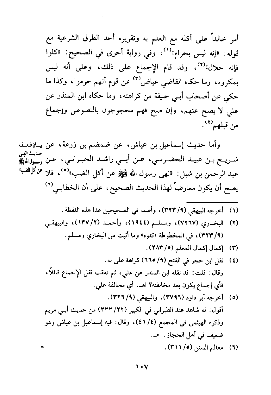 وأما حديث إسماعيل بن عياش، عن ضمضم بن زرعة، عن شريح بن عبيد الحضرمي، عن أبي راشد الحبراني، عن عبد الرحمن بن شبل: "نهى رسول الله - صلي الله عليه وسلم - عن أكل الضب" (¬5)، فلا يصح أن يكون معارضًا لهذا الحديث الصحيح، على أن الخطابي (¬6)