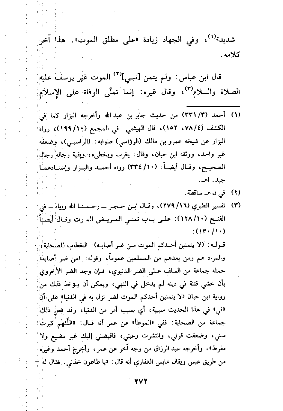 (¬3) تفسير الطبري (16/ 279)، وقال ابن حجر -رحمنا الله وإياه- في الفتح (10/ 128): على باب تمني المريض الموت وقال أيضًا (10/ 130):