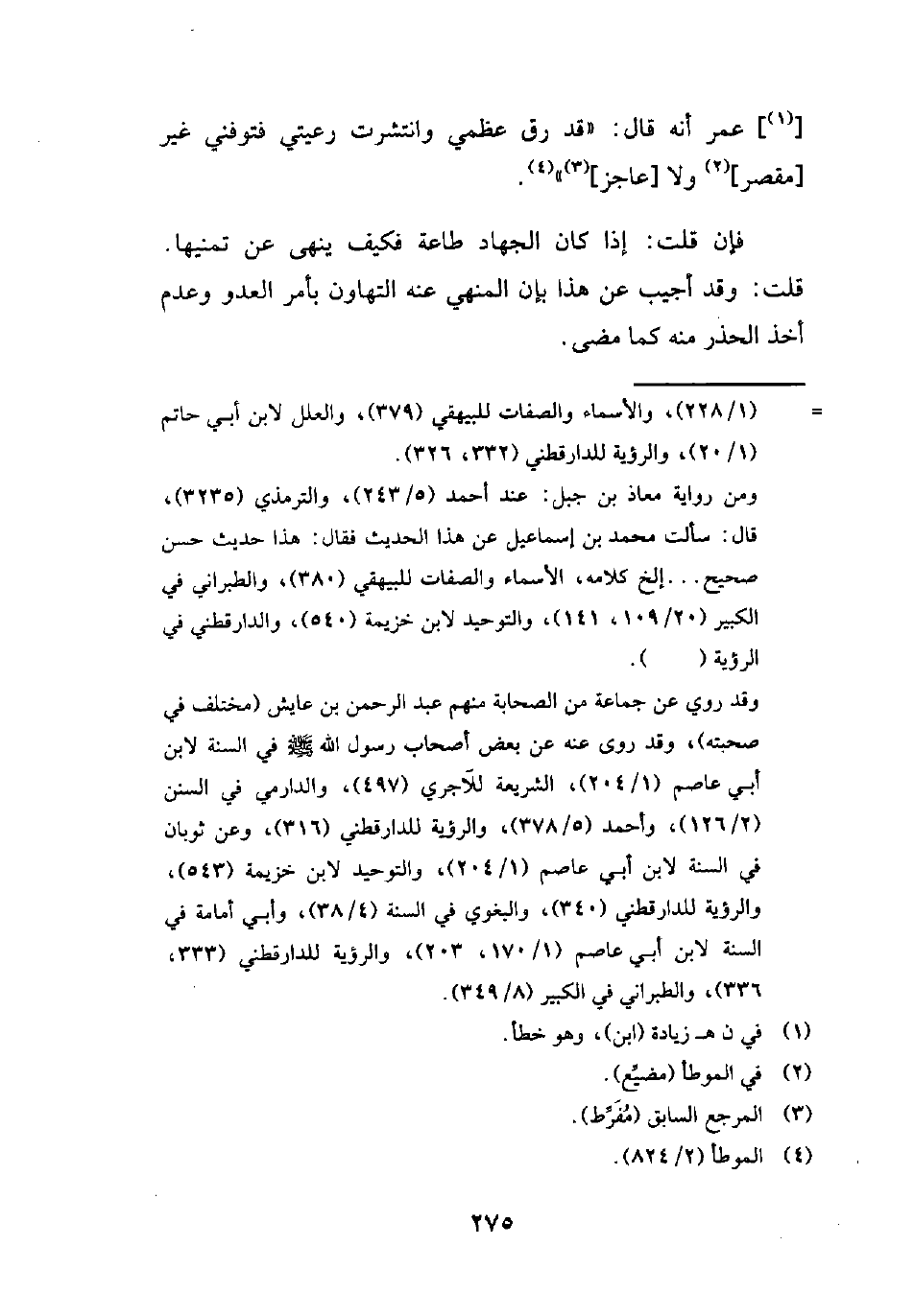 = (1/ 228)، والأسماء والصفات للبيهقي (379)، والعلل لابن أبي حاتم (1/ 20)، والرؤية للدارقطني (332، 326).