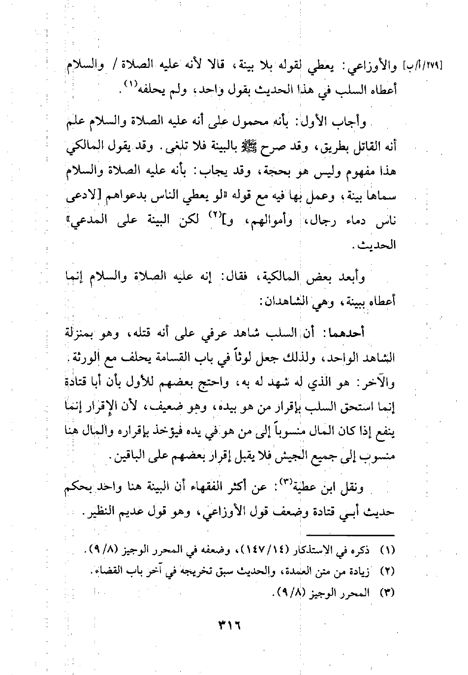 ونقل ابن عطية (¬3): عن أكثر الفقهاء أن البينة هنا واحد بحكم حديث أبي قتادة وضعف قول الأوزاعي، وهو قول عديم النظير.